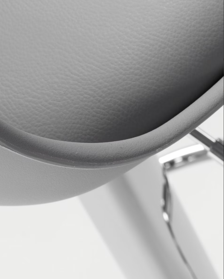 • El cuerpo del taburete está fabricado en polipropileno y el pie es de acero cromado.