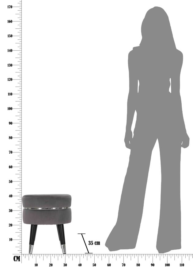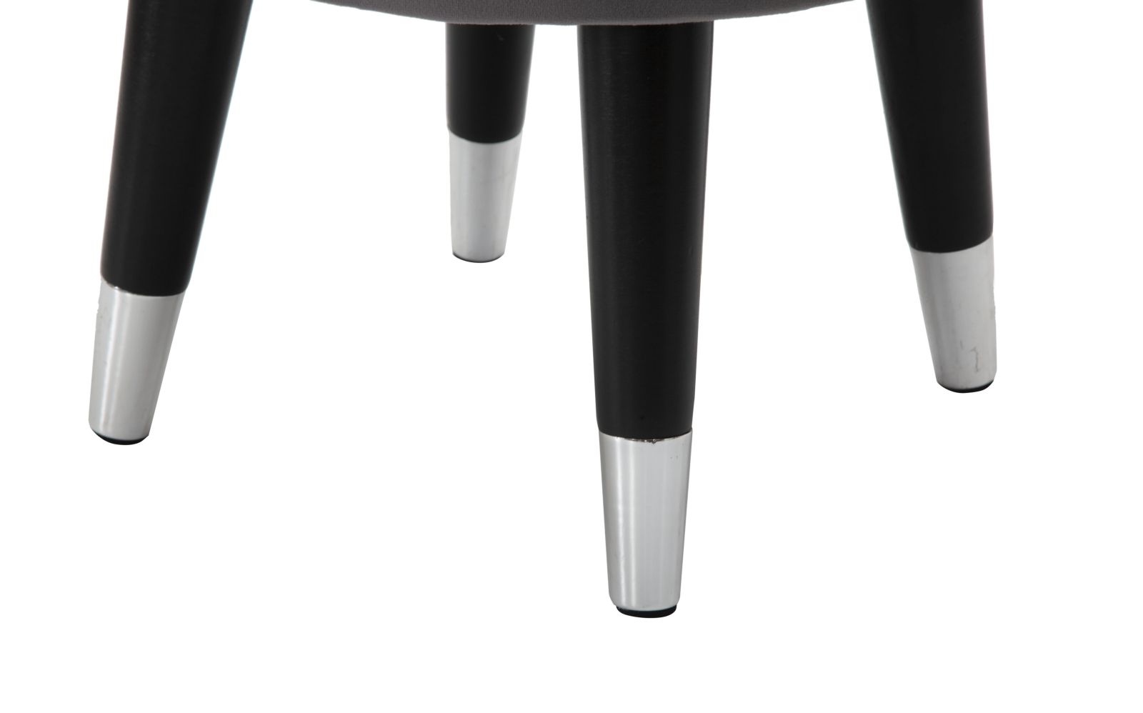Taburete en madera y terciopelo gris. Asientos con acabado plateado inspirados en los vestidores de las grandes divas de Hollywood. Ideal para colocar en el dormitorio o en el salón para sentirte como una estrella.