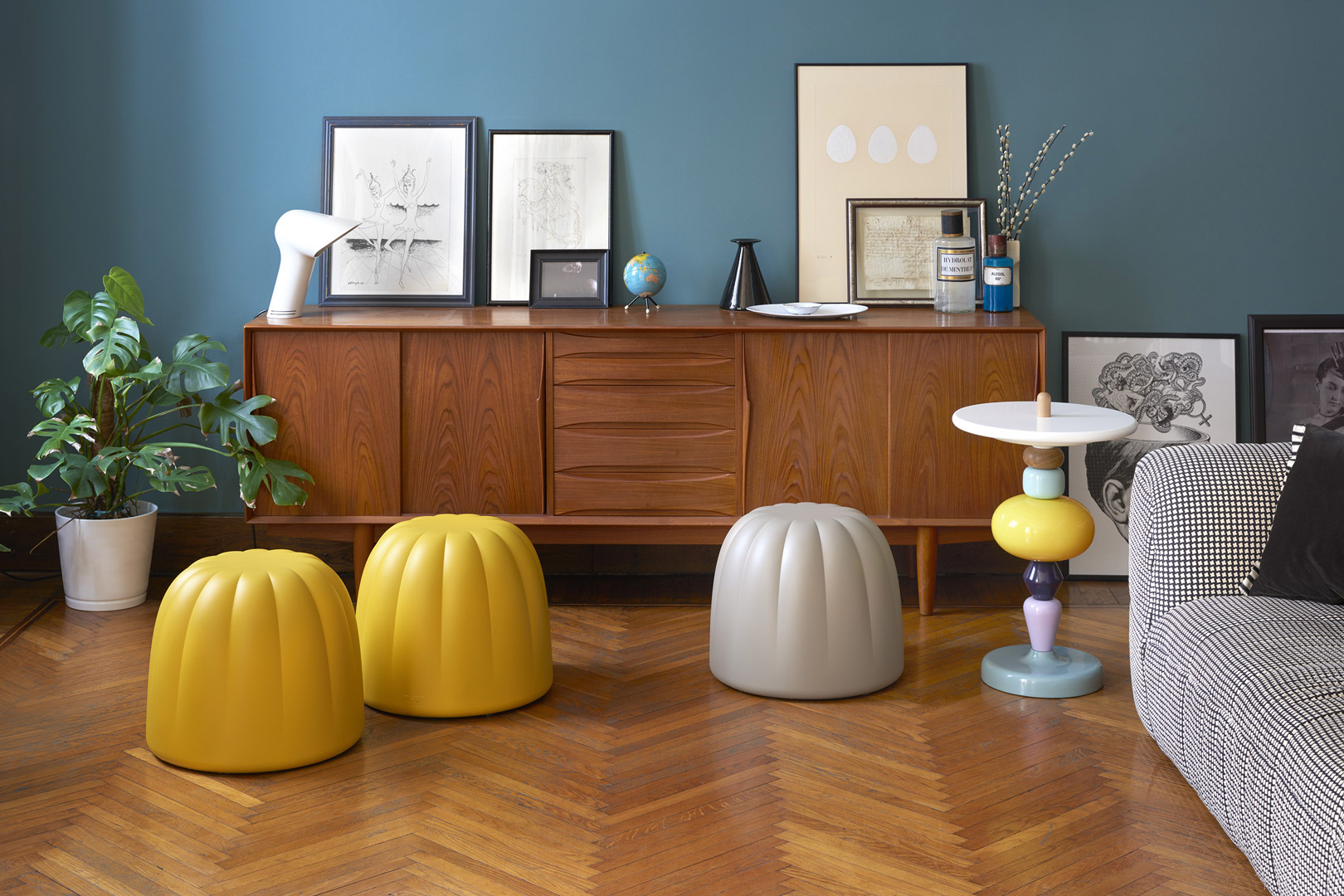 Ganador del premio GOOD DESIGN en 2018, Gelée Lounge, creado por Roberto Paoli, es el sillón lounge que integra la colección Gelée y está realizado íntegramente en poliuretano suave. Al igual que el taburete Gelée y el puf Gelée Grand, el Gelée Lounge también recuerda la forma de las gomitas, pero con el añadido de un cómodo respaldo. La suavidad y la forma envolvente de Gelée Lounge invitan a “saborearla” a primera vista.