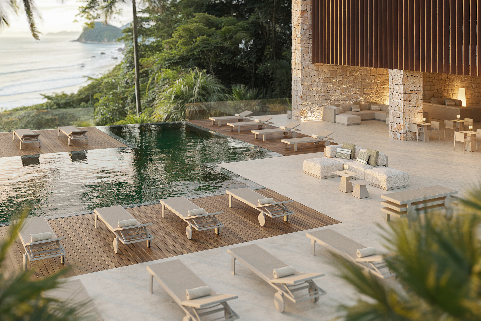 Inspirada en el glamour de los años 20, la tumbona Gatsby rinde homenaje al estilo Art Déco con sus líneas limpias y elegantes. Cada línea y ángulo de la tumbona refleja la opulencia y sofisticación de una época dorada, ofreciendo no solo un elemento funcional sino también decorativo que enriquece el espacio exterior. Su diseño minimalista y sus refinados detalles evocan una sensación de lujo, transformando cualquier espacio exterior en un oasis de estilo.