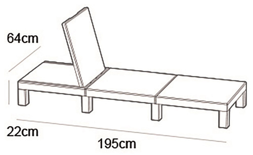 Mide 195cm de largo, 65cm de ancho y 25,5cm de alto, con respaldo reclinable en 4 posiciones para máxima comodidad.
