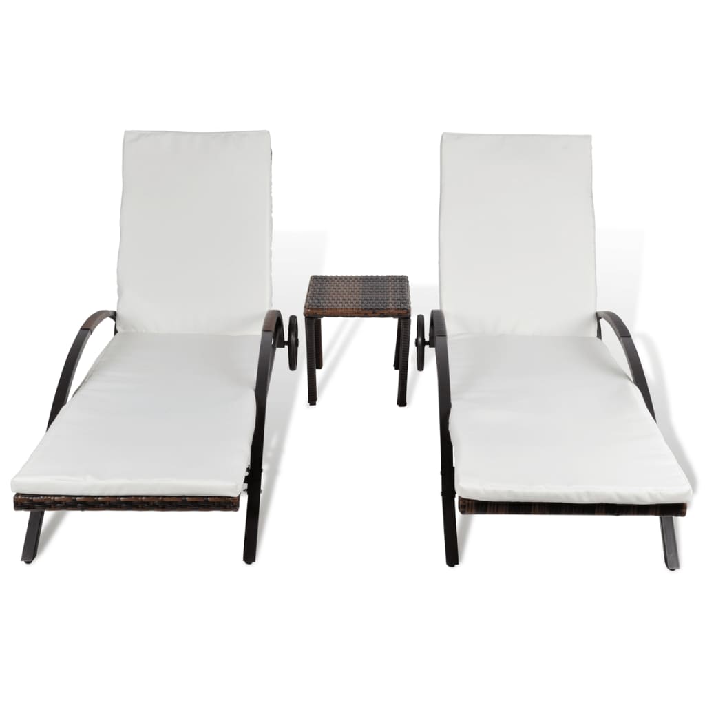 Gracias al ratán PE impermeable y resistente a la intemperie, el conjunto de tumbonas es fácil de limpiar, resistente y apto para el uso diario. Tanto las tumbonas como la mesa cuentan con una robusta estructura de acero con recubrimiento en polvo, lo que las hace muy estables y duraderas. El respaldo de las tumbonas se puede ajustar para encontrar la posición más cómoda. Los cojines gruesos y extraíbles aumentan la comodidad de las tumbonas. Las fundas de los cojines se pueden quitar y lavar fácilmente. Gracias a las ruedas, las tumbonas son fáciles de mover. Puede tener sus bebidas, teléfonos, libros u otros objetos pequeños a mano en la robusta mesa cuadrada.