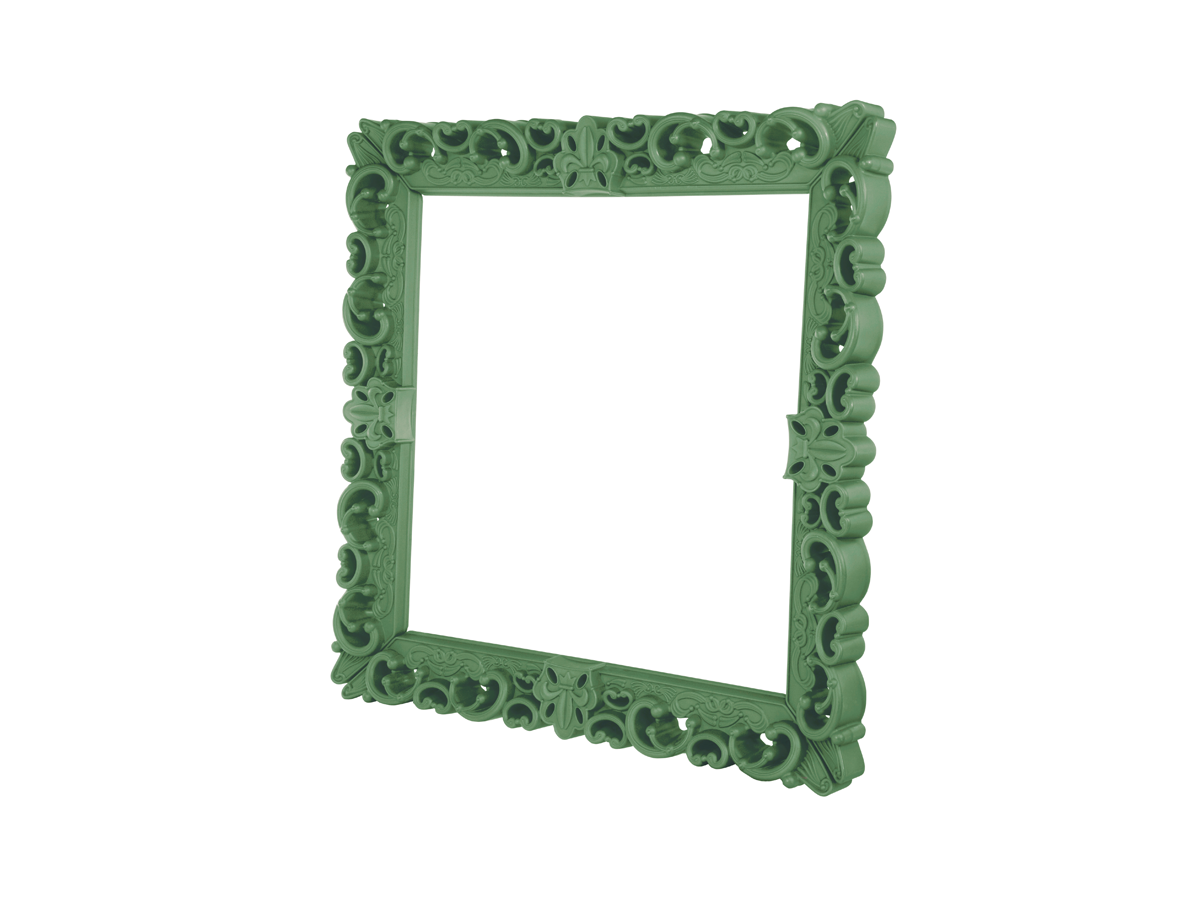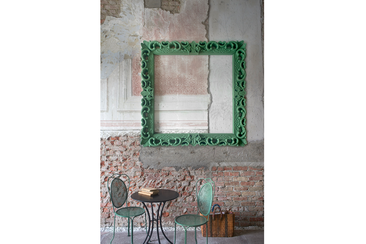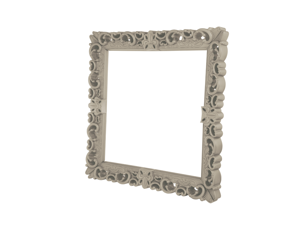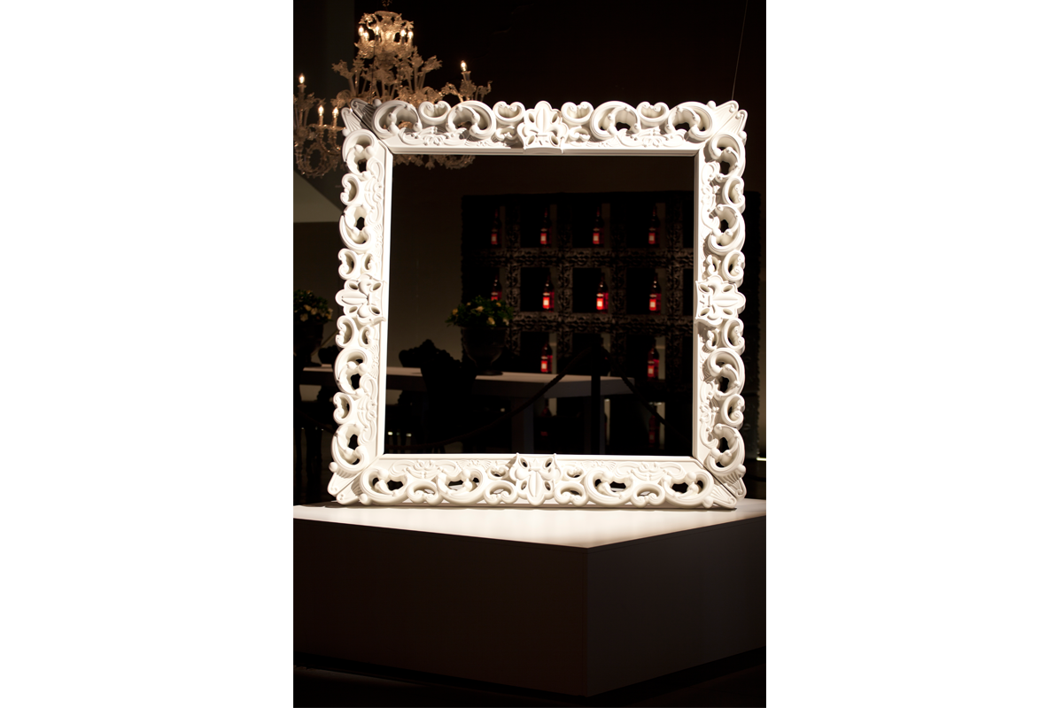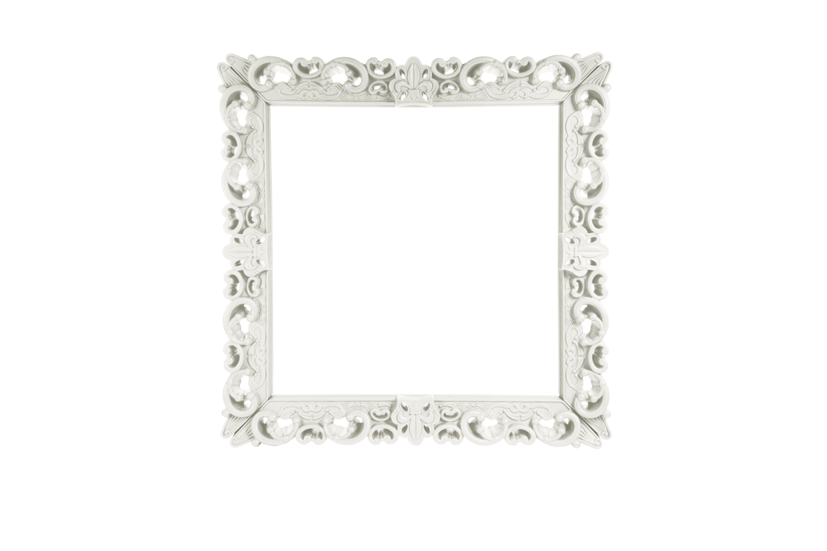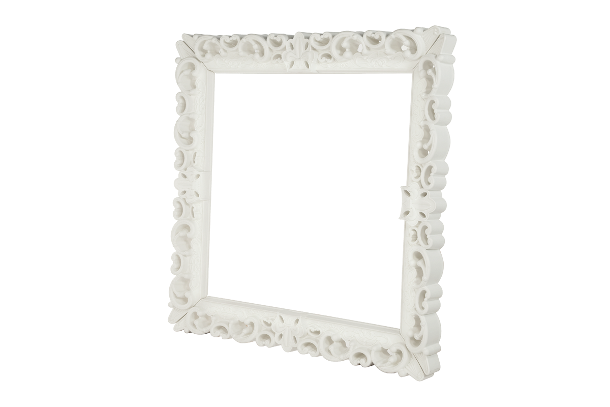 The Frame of Love - L es un artículo muy singular con sus notables dimensiones y sus intrincados detalles de estilo rococó, que sin duda no pueden pasar desapercibidos. El imponente tamaño de los lados 162 cm por 162 cm, permite que el Marco del Amor, con su majestuosidad, se convierta en el protagonista de los grandes volúmenes de salas, exposiciones y galerías, integrándose en la filosofía del macrodiseño recientemente presentada por SLIDE.