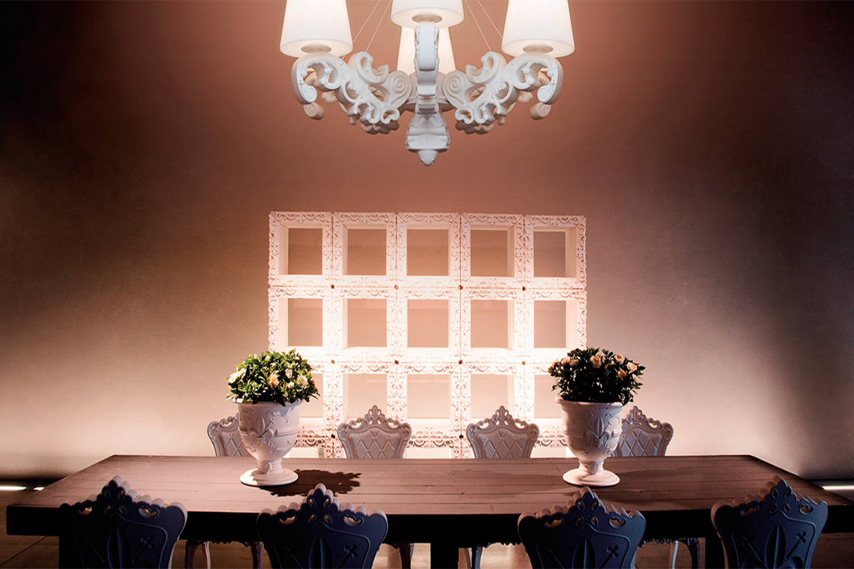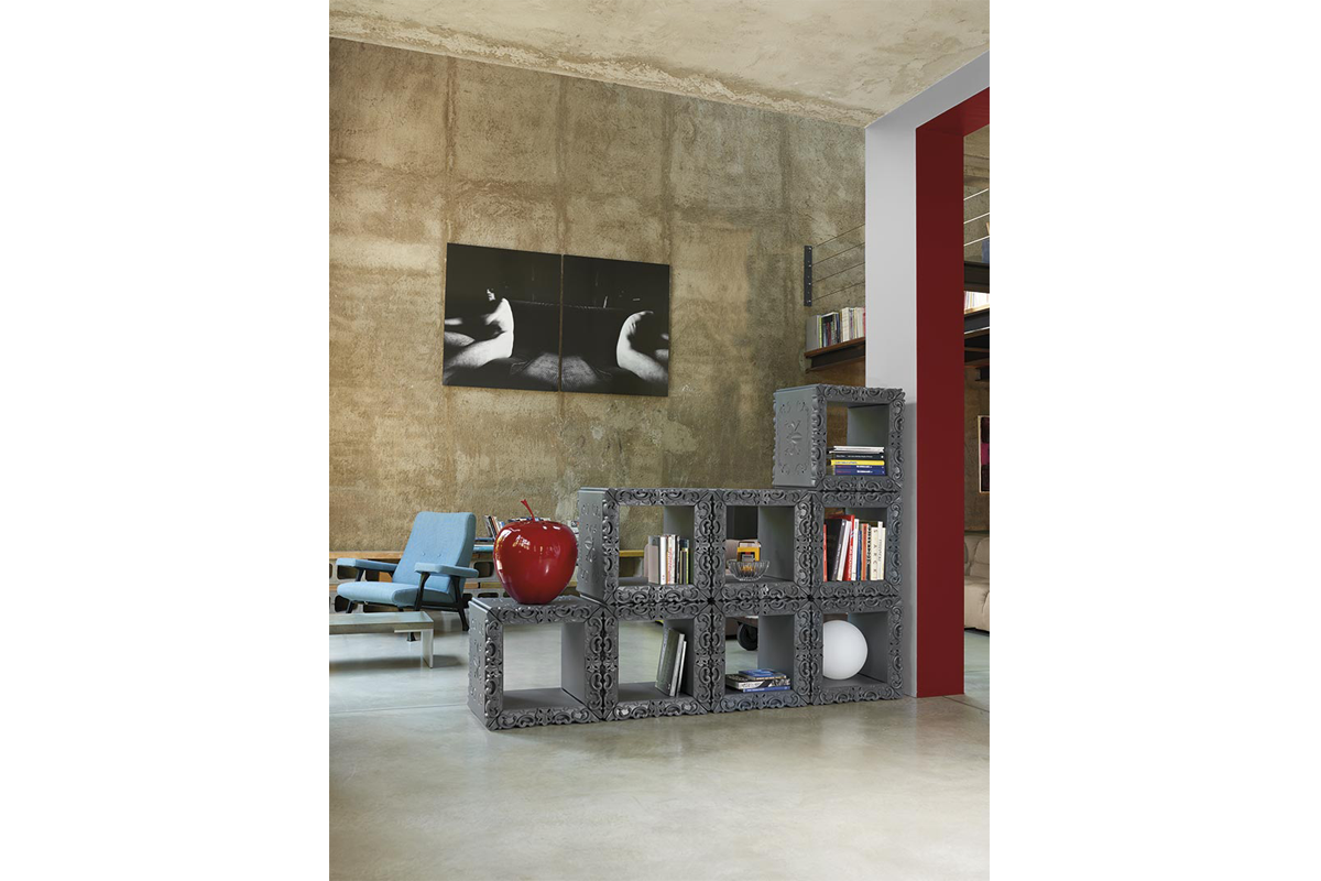 El Joker of Love es un elemento de diseño versátil, que gracias a su característica modular se puede utilizar para componer y amueblar cualquier tipo de espacio según sea necesario. Con sus formas articuladas y complejas de estilo rococó, el Joker of Love se puede componer con otros módulos para convertirse en una librería, un divisor para espacios abiertos, un archivo de oficina o como un solo mueble.